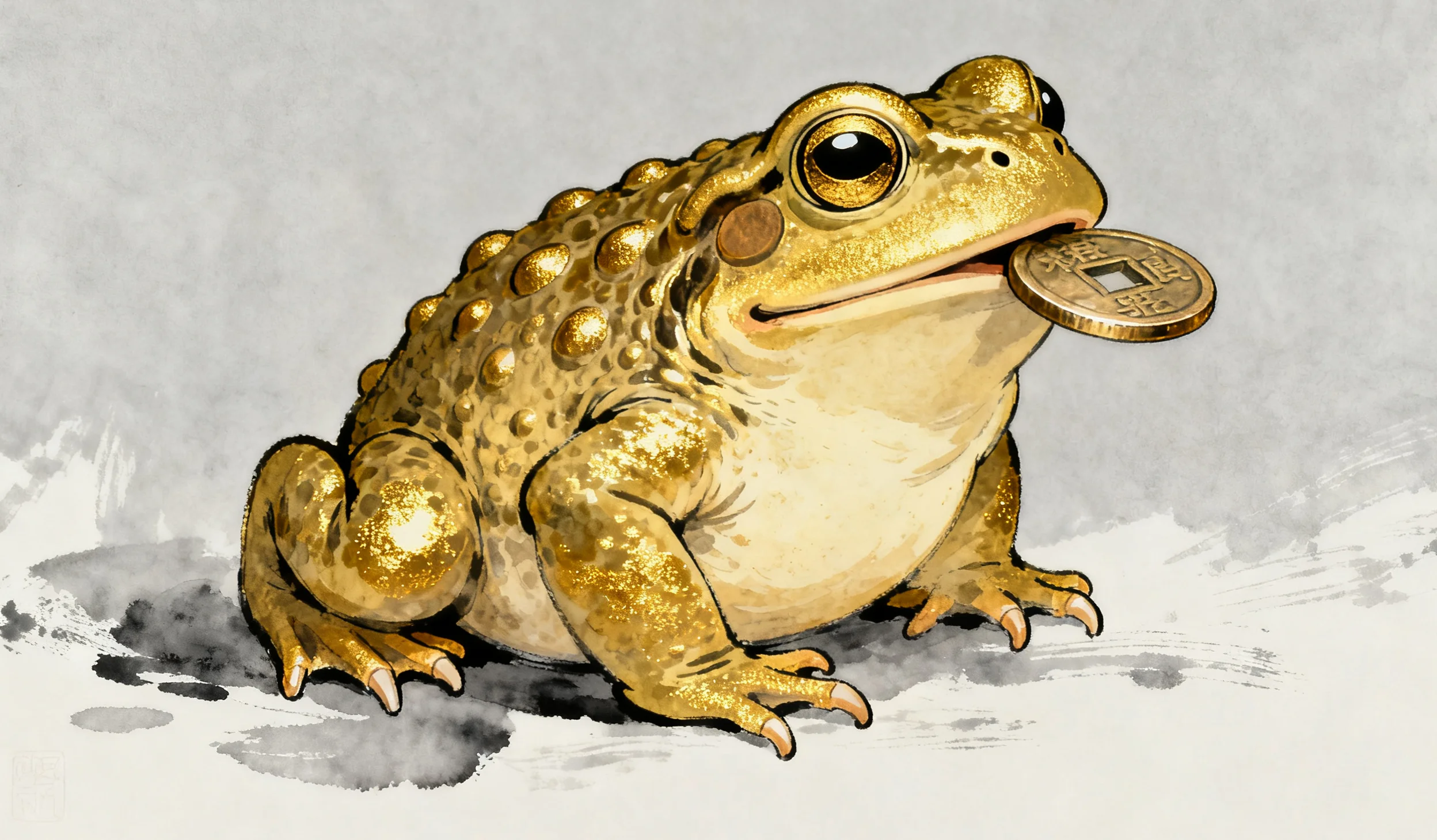Thus, the Golden Toad is endowed with spirituality and evolved into an auspicious symbol for attracting wealth and treasure. Its image, holding a coin in its mouth and standing on gold ingots, is deeply rooted in popular belief, often enshrined by businesses for prosperity.