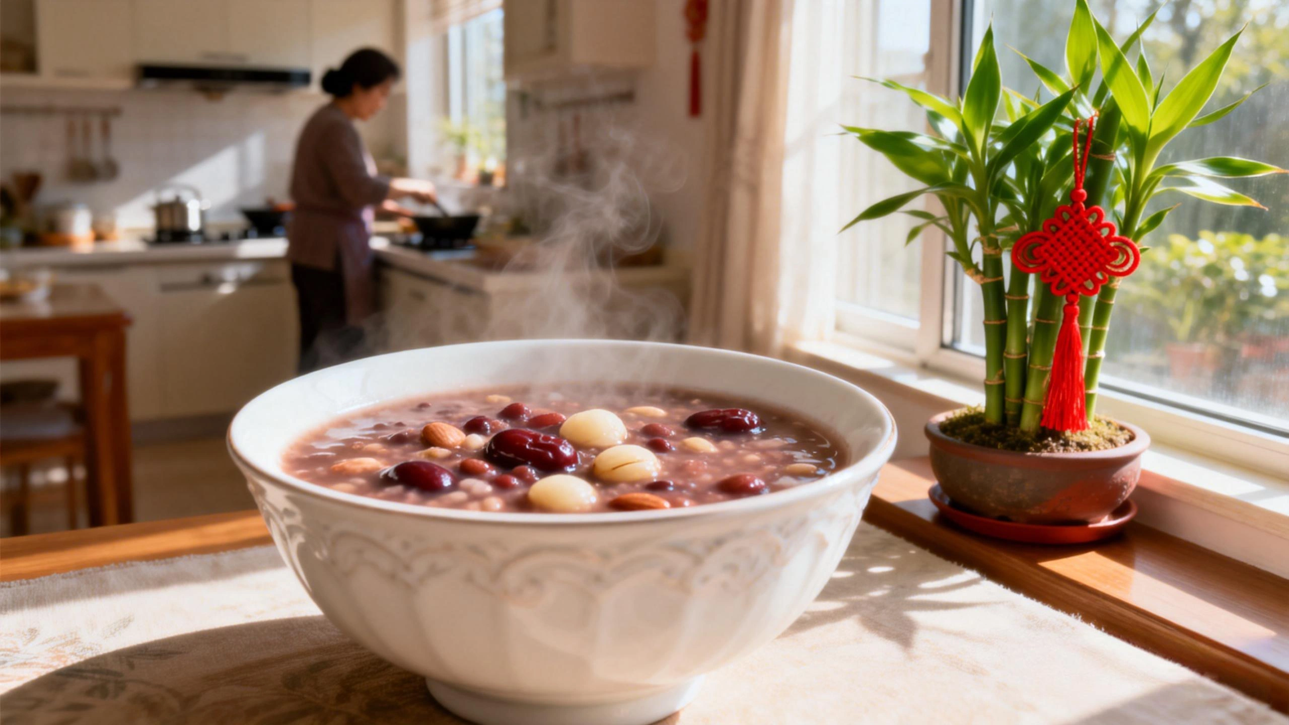 Laba Congee: On the Laba Festival, consume Laba congee (Eight-Treasure porridge). Its variety of ingredients embodies the Five Elements energy. It's recommended to cook it at home and not leave it overnight.