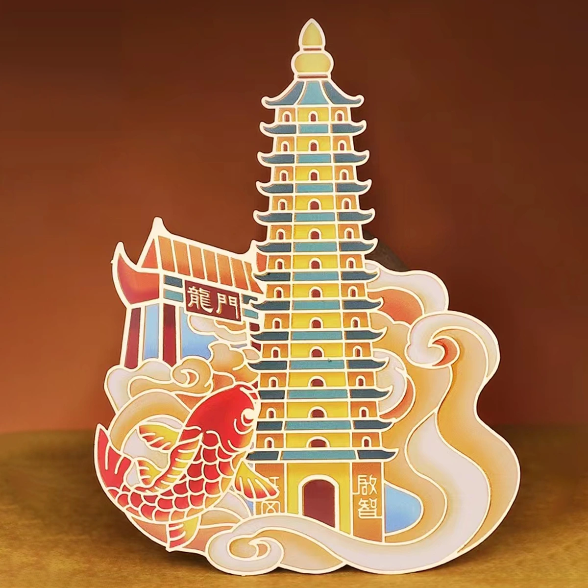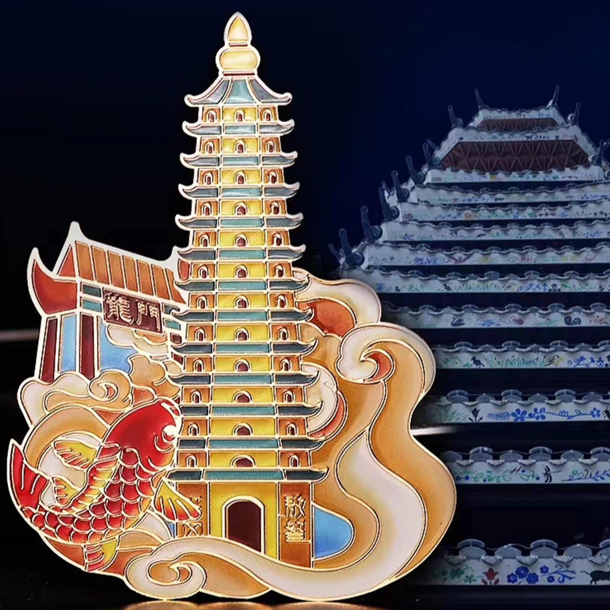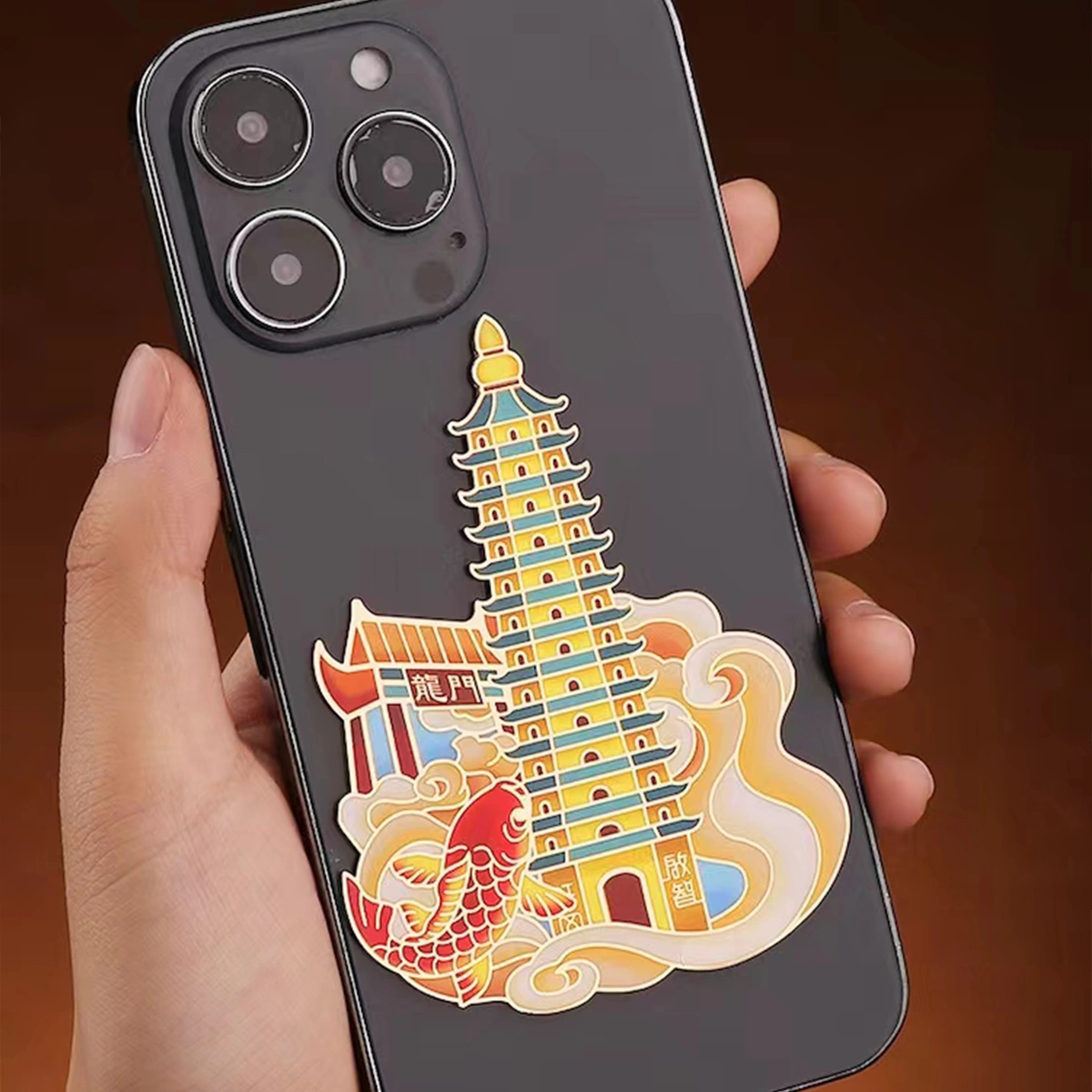 1. 13-Tier Wenchang Pagoda Metal Sticker is an academic enhancement artifact, featuring a stainless steel etching of a 13-tier pagoda silhouette with a simplified relief of "Carp Leaping Dragon Gate" at its base.