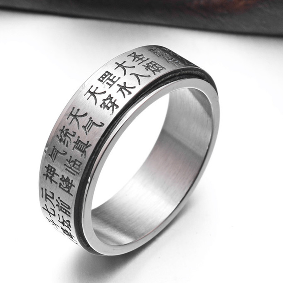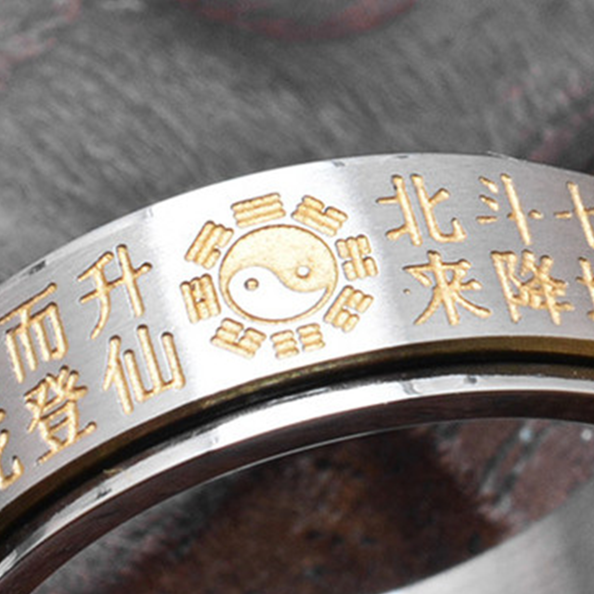 1. The Big Dipper Titanium Steel Ring interprets Daoist astral wisdom through modern metallic aesthetics. The band features an engraved Taiji Bagua symbol, with a rotating Big Dipper constellation embedded at its center.