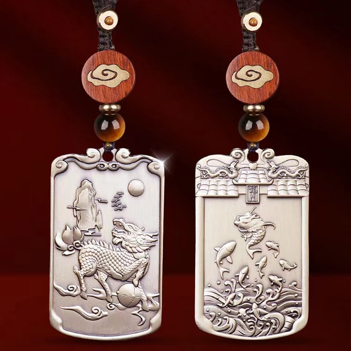 1. The Carp Leaping Over Dragon Gate Pendant is an auspicious ritual instrument forged from pure brass energy, meticulously carved from a single brass piece into a koi fish surging through waves.