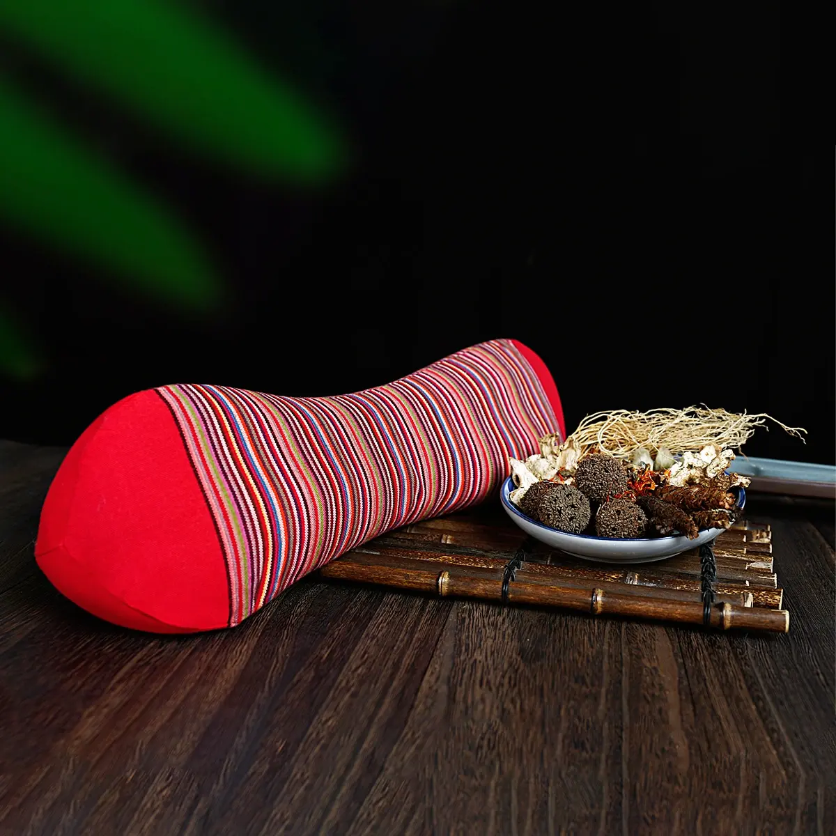 1. Chinese Herbal Cervical Pillow, Warming Formula is a curvature-traction therapeutic pillow, featuring a memory foam groove embedded with pungent-warm herb sachets filled with mugwort leaf, Qianghuo ( Notopterygium incisum), Weilingxian ( Clematis chinensis), and herbs.