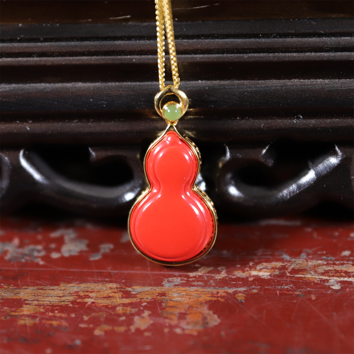 1. The Cinnabar Gold-Plated Silver Gourd Pendant is a protective sacred object that integrates the energy of natural minerals.