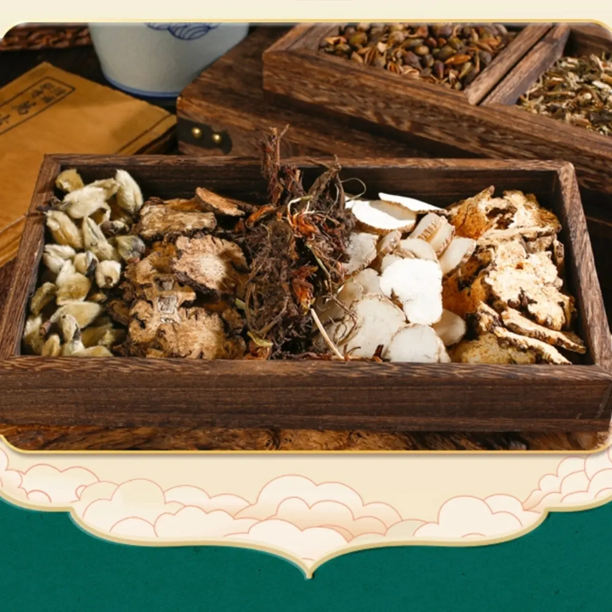 1. Formula adapted from epidemic-avoidance prescriptions in 《Handbook of Prescriptions for Emergencies》(《肘后备急方》, c. 340 AD), sewn during Dragon Boat Festival. On each new moon day, sun-dry herbs under Chen-period sunlight.