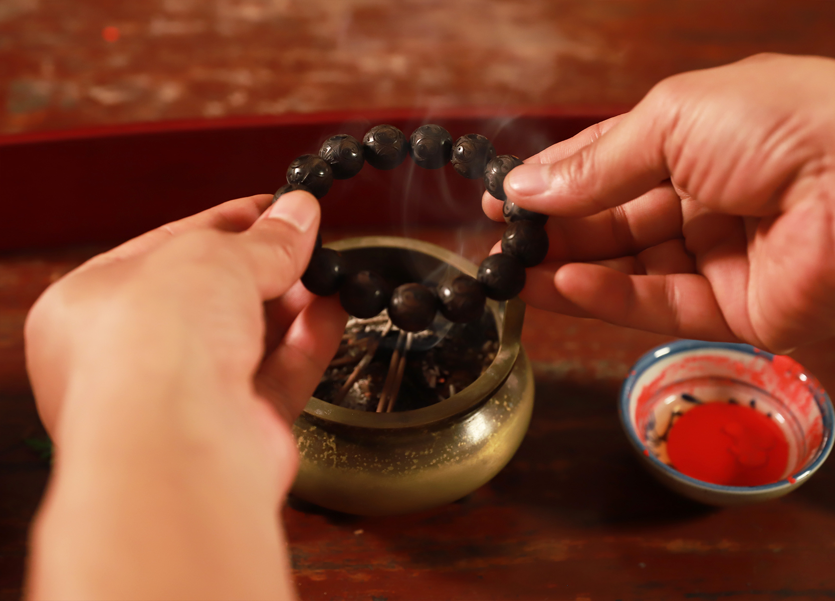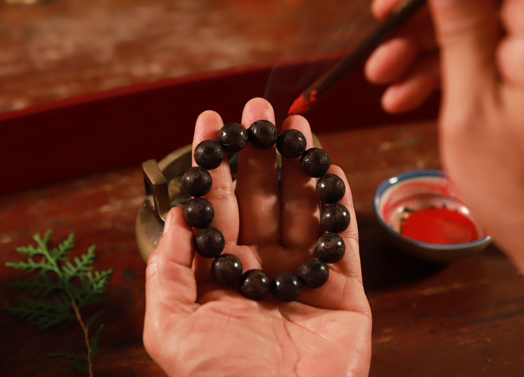 Ebony's profound hue mirrors Daoist wisdom of "Inner Emptiness Illuminating Truth" (照见真空). Chanting mantras with this bracelet accelerates mental clarity; daily wear creates a "Portable Sanctum" (随身道场) dissolving conflicts. Placed on study desks, it guards creative flow and domestic harmony.