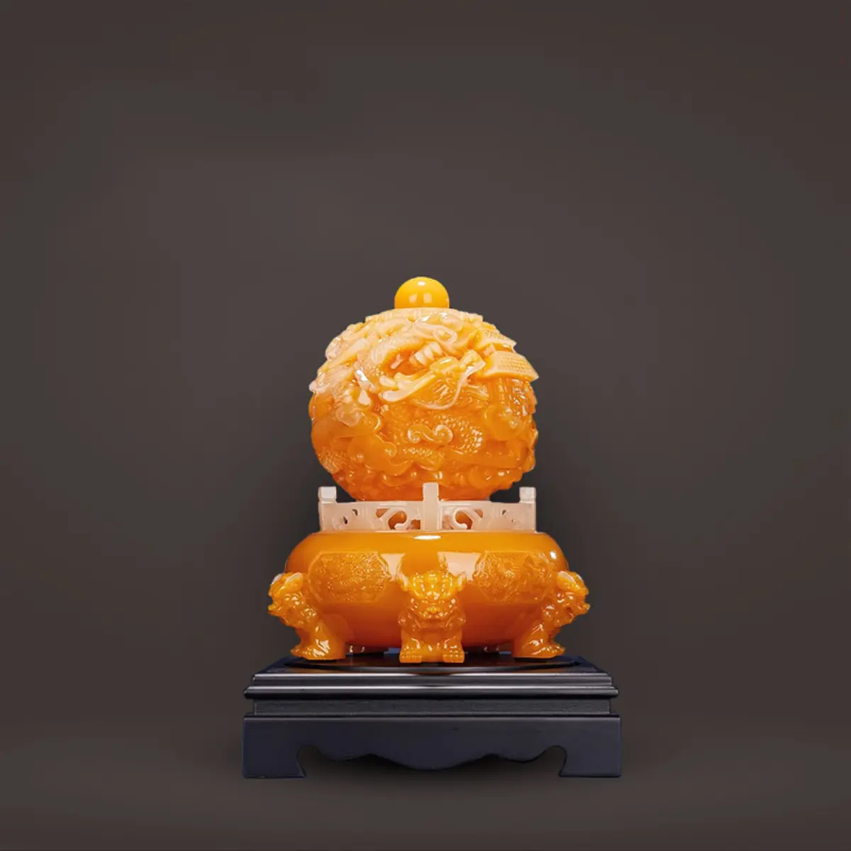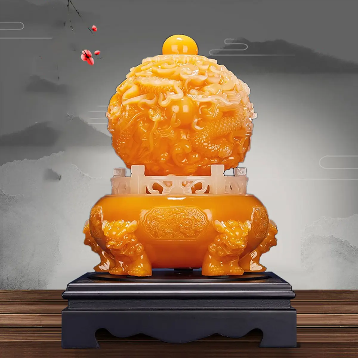 2. Cast in archaic bronze as a three-legged cauldron, its body bears reliefs of "Auspicious Dragons Sporting Pearls · Dragons Commanding Nine Heavens" (祥龙戏珠·龙御九霄), with nine coiled dragons amidst clouds.