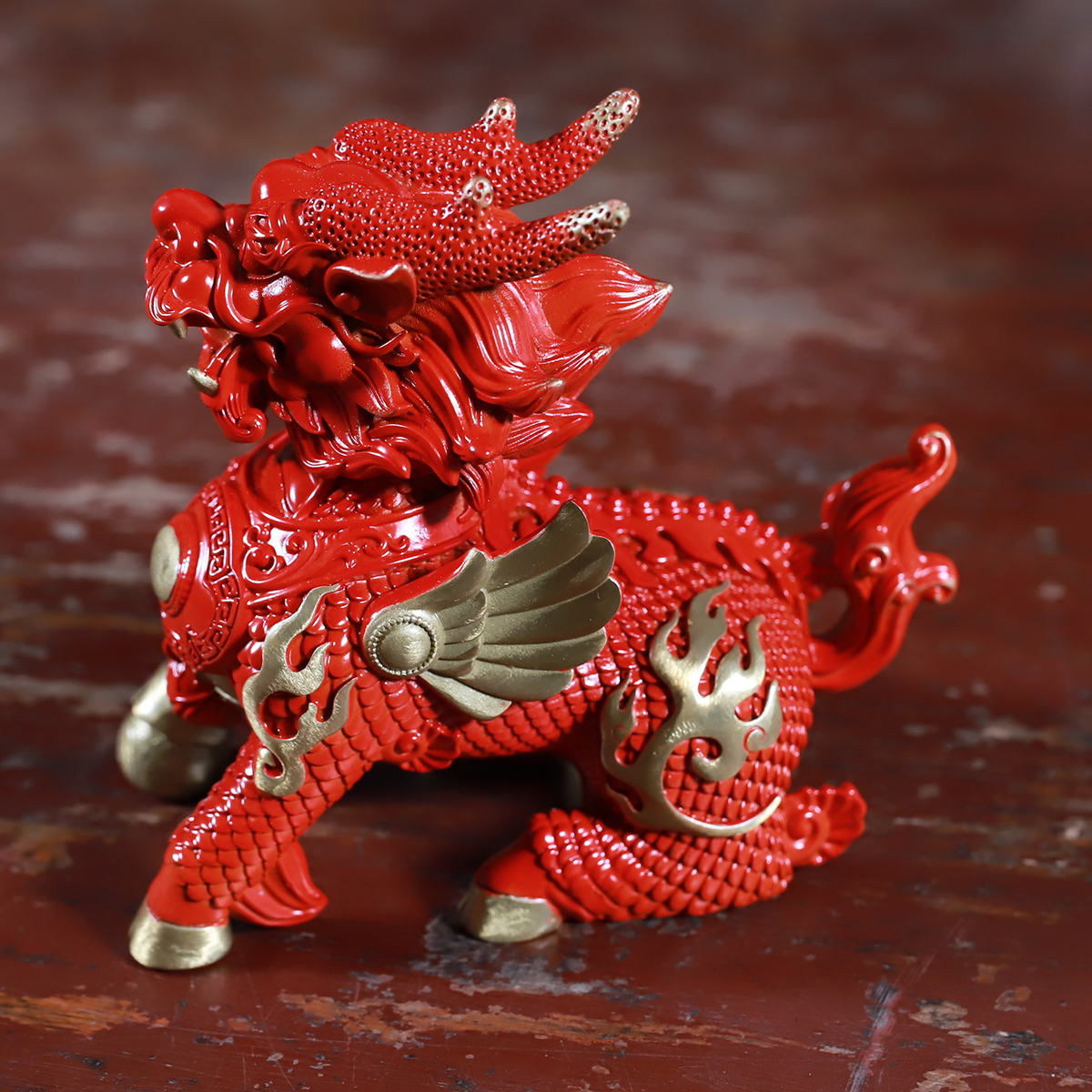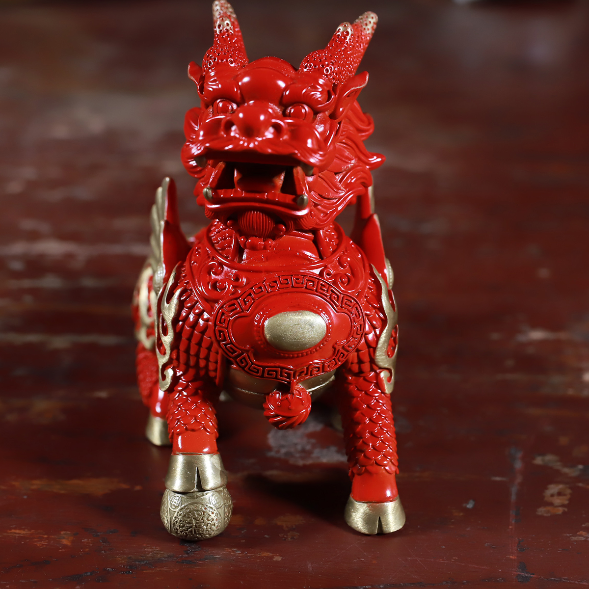1. The Full Copper Painted Qilin Statue is a sacred object that embodies the five elements of fire. It is cast in the form of a mighty unicorn using ancient fine copper, and the whole body is painted with cinnabar to radiate auspicious light.
