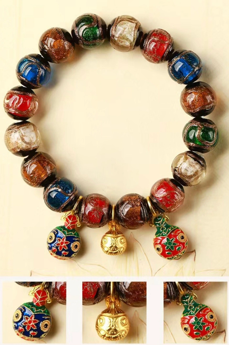 Gold-Devouring Beast Incense Ash & Glazed Bead Bracelet (Wealth Attraction)