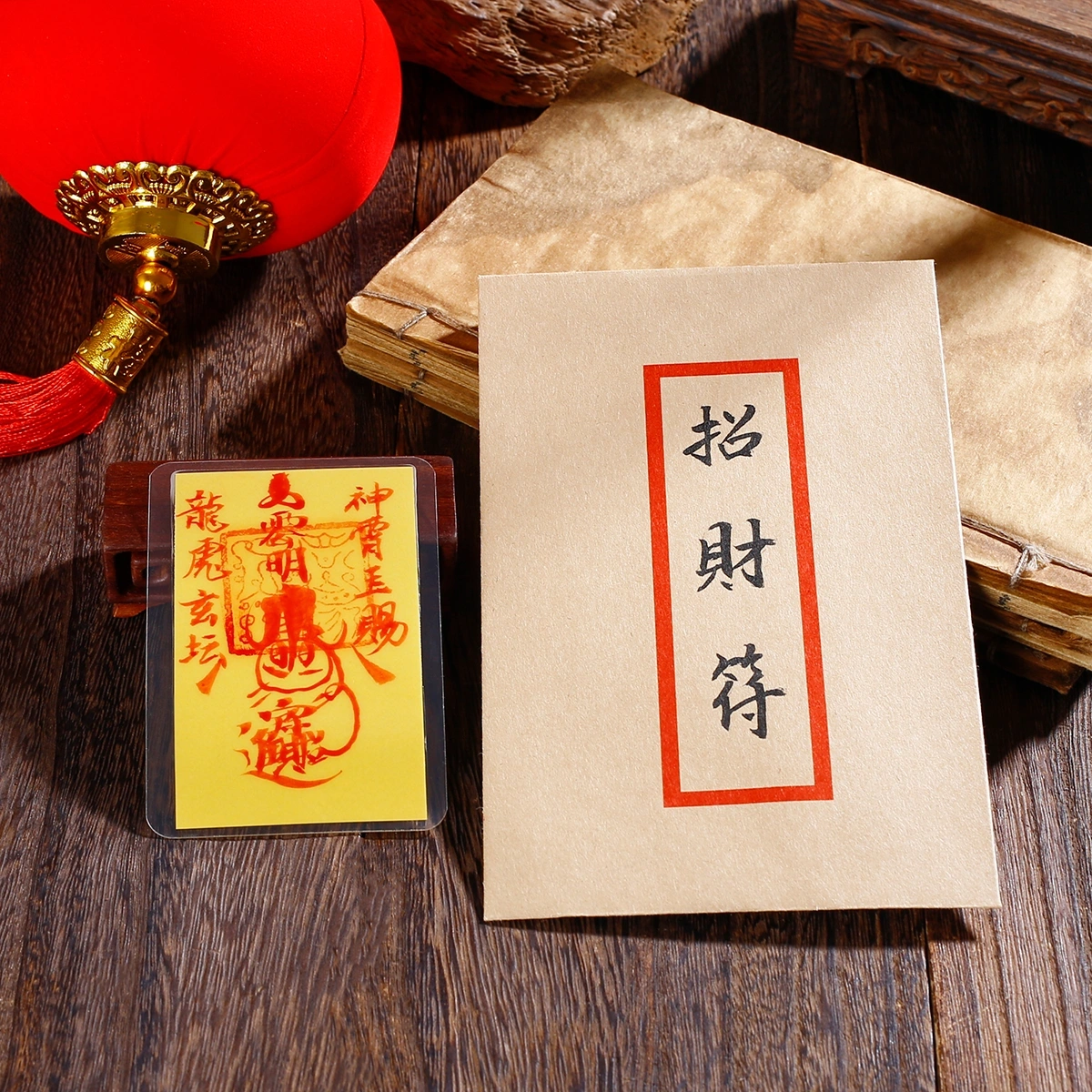 1. The Hand-Painted Spirit Blessing Phone Talisman Card is a portable spiritual object condensing the essence of Taoist Dharma, composed of yellow paper inscribed with vermilion ink blessing spells, sealed within a plain linen envelope.