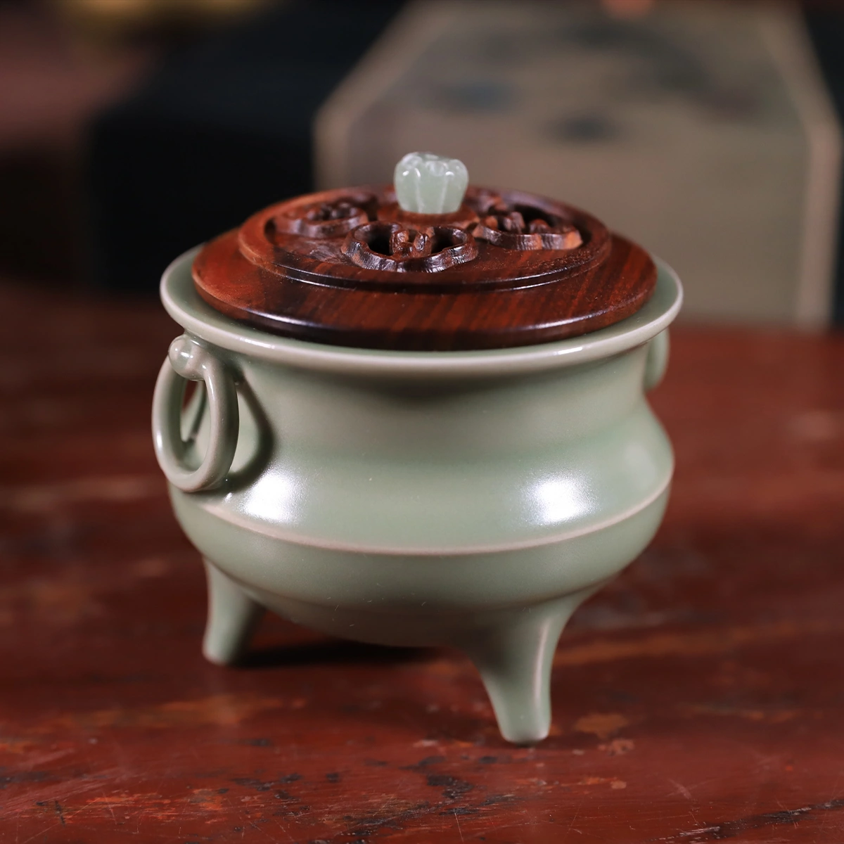 - Incense burner material: porcelain, mahogany lid