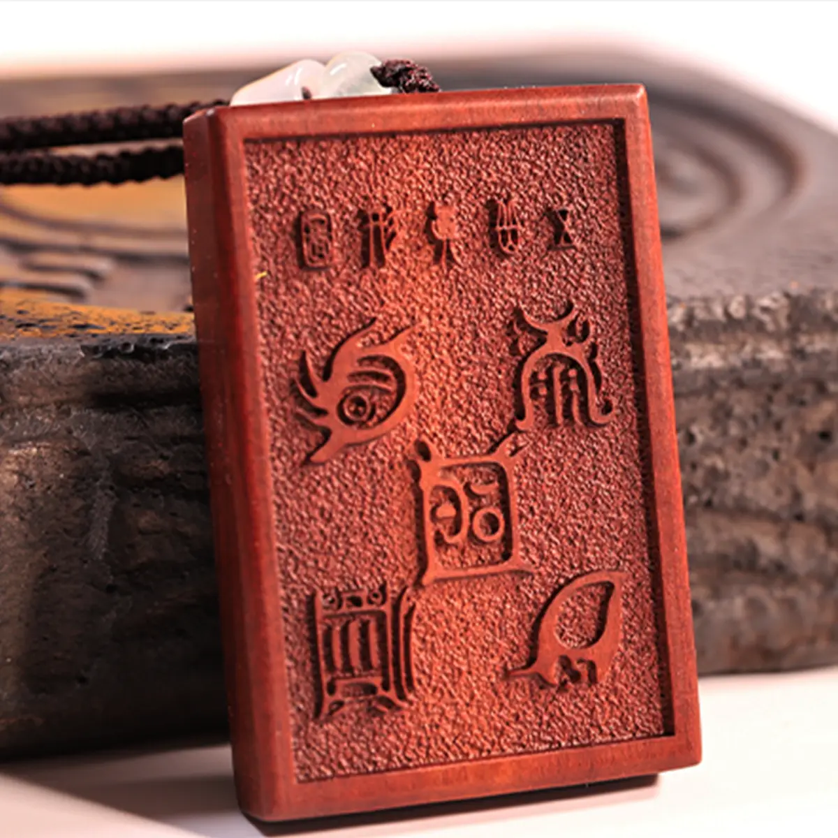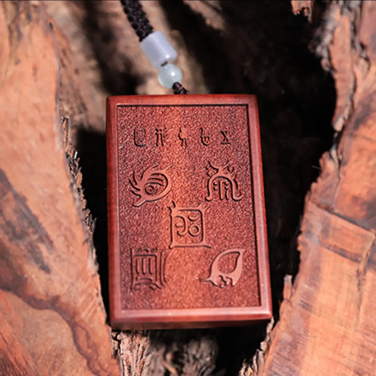 Crafted from thunder-blasted jujube wood engraved with the Five Sacred Peaks sigil (五岳真形图), its reverse features a rotating brass Primordial Eight Trigrams plate.