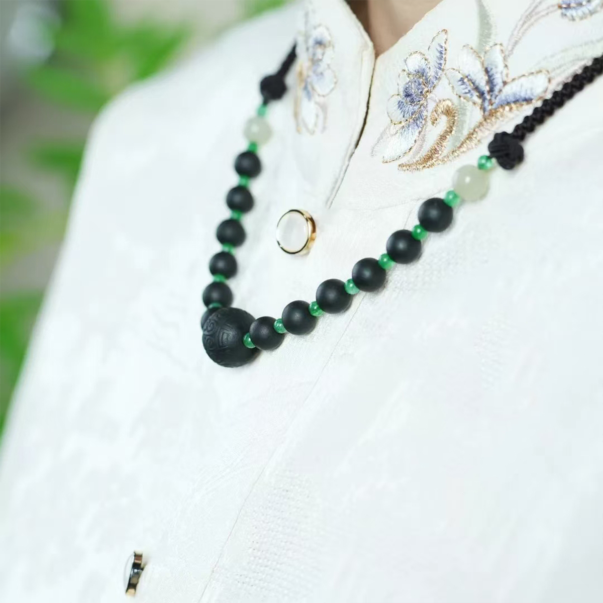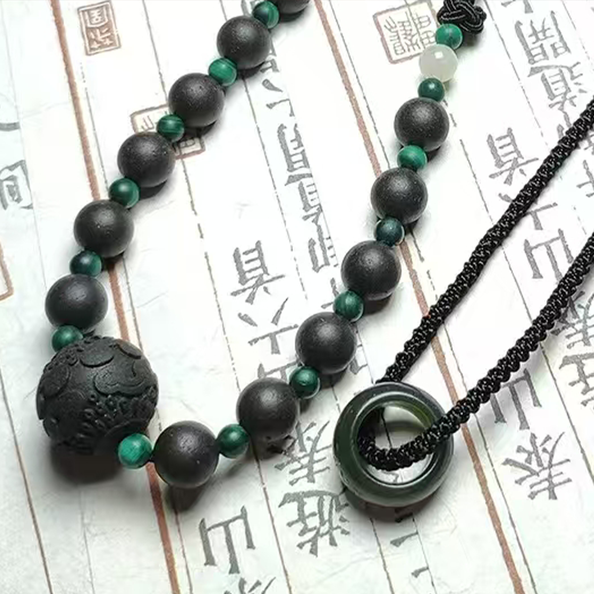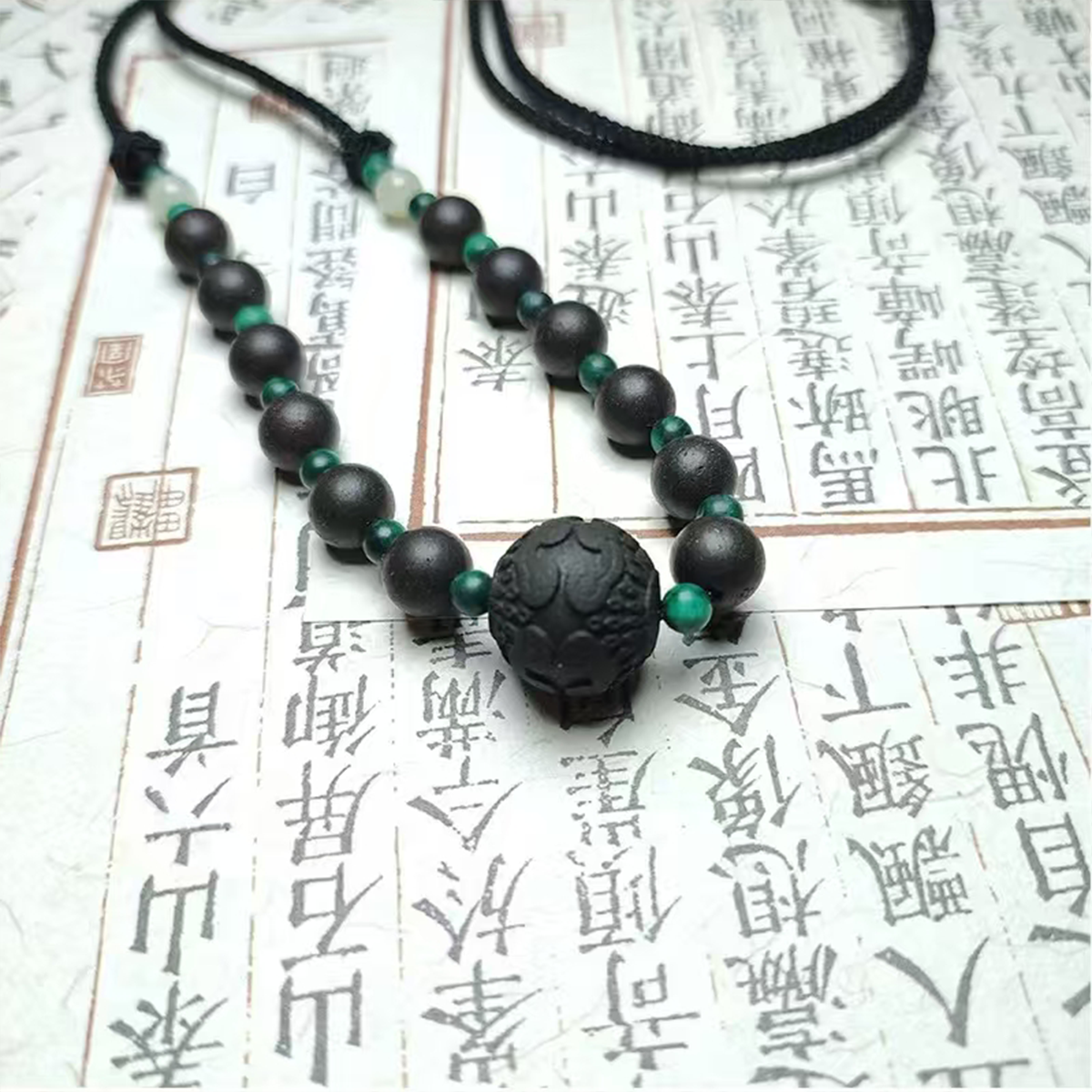 The Natural Thousand Blessings Incense Bead Pendant is an ancient aromatherapy accessory, which is made of a mixture of twelve natural incense powders such as agarwood, sandalwood, and frankincense, and the bead is engraved with the "Qianling" mantra.