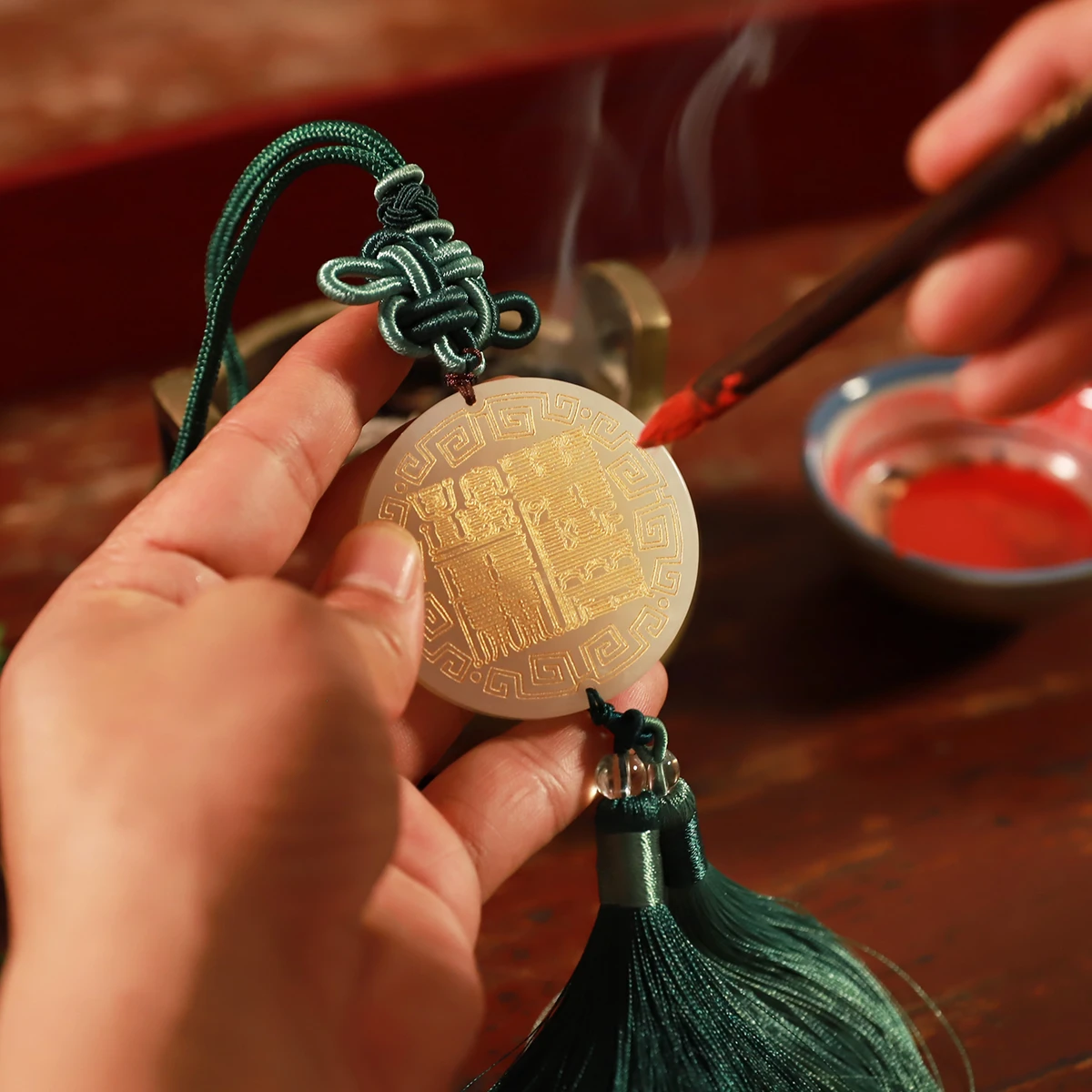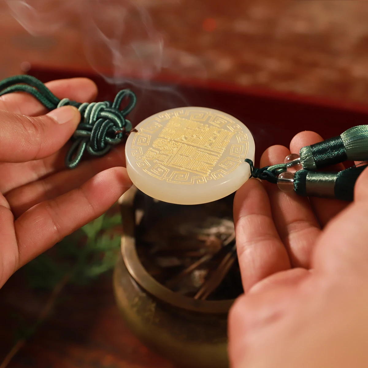 2. This jade transcends ordinary adornments. Whether worn close or hung in central halls, it activates a Three Talents Illumination Field.