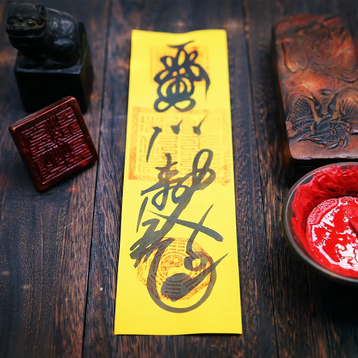 1. The "Noble Patron" Hand-Painted Blessing Scroll coalesces millennia of Daoist wisdom. Ordained masters ink"Tianyi Noble Patron" incantations with pine-soot cinnabar ink on golden-grain Anhui paper, surrounded by 28 Lunar Mansions shorthand patterns.