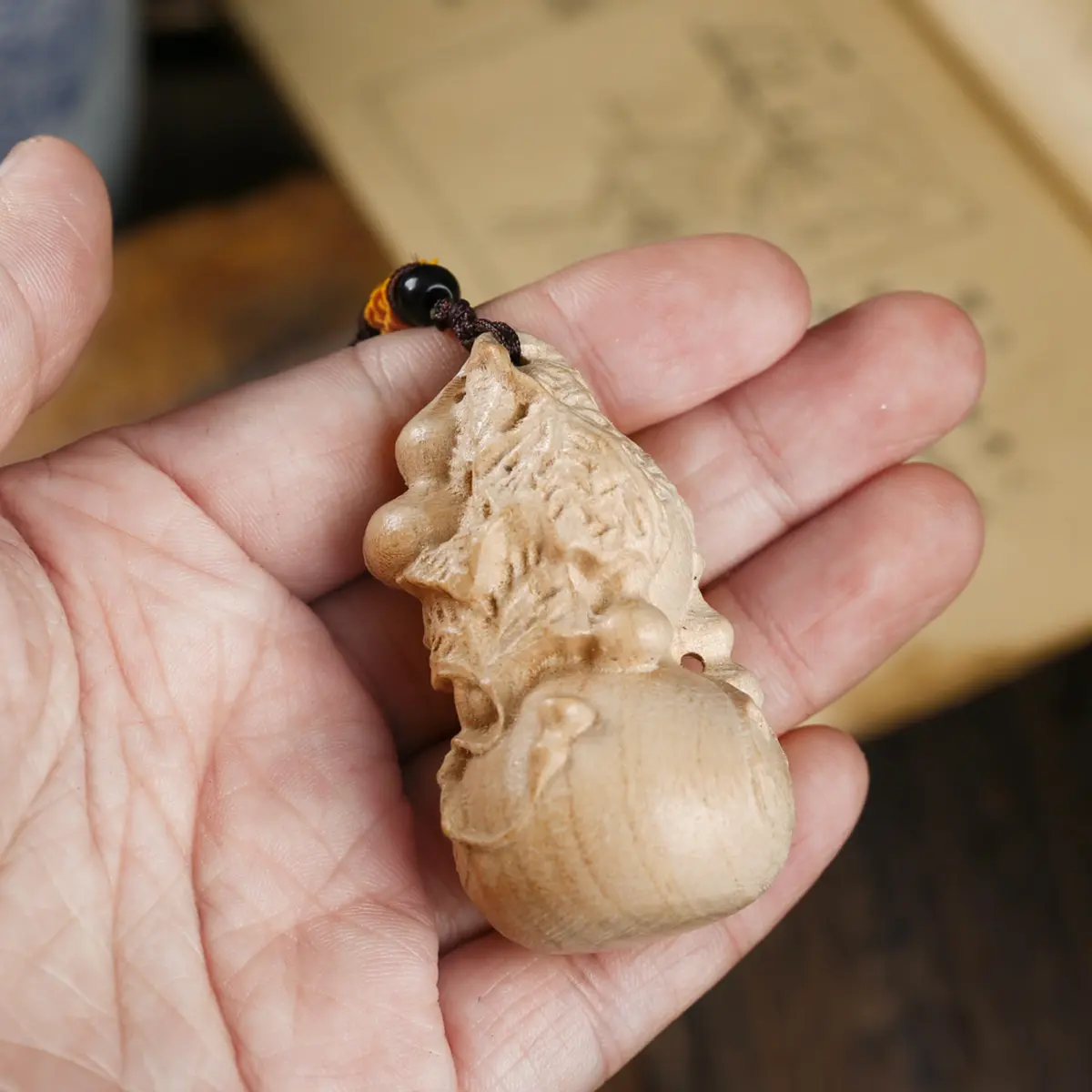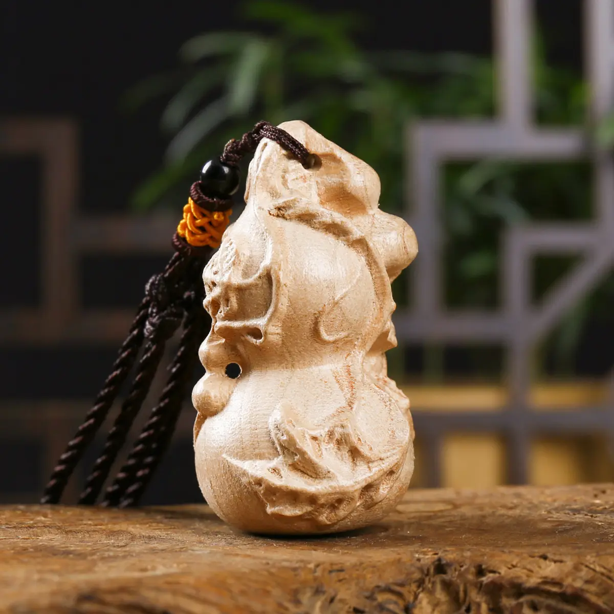 1. This sacred household artifact features five miniature gourds carved from lightning-struck peach wood encircling a mother gourd, each engraved with symbols: bat, deer, crane, turtle, and pomegranate.