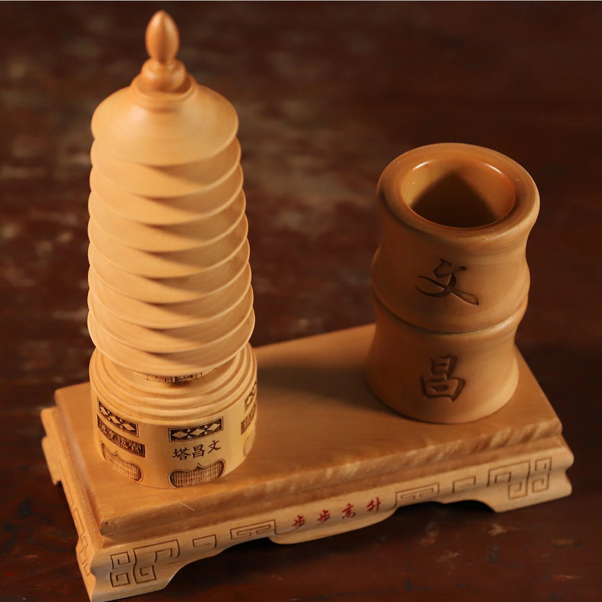 Peach Wood Wenchang Pagoda Brush Holder (Enhances Academic)