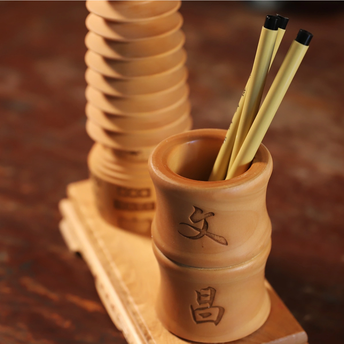 1. Peach Wood Wenchang Pagoda Brush Holder crafts natural peach wood into a vessel of scholarly prosperity.