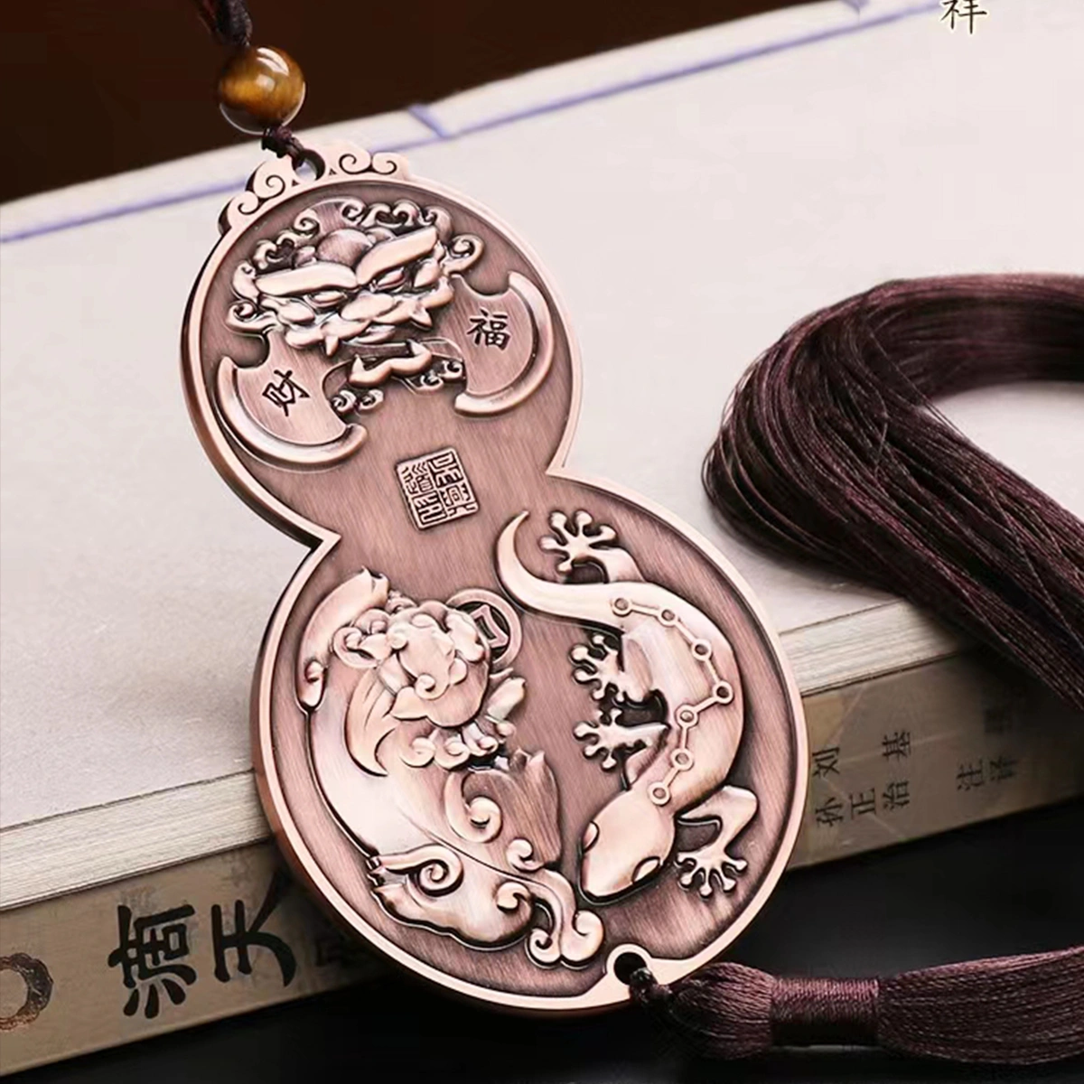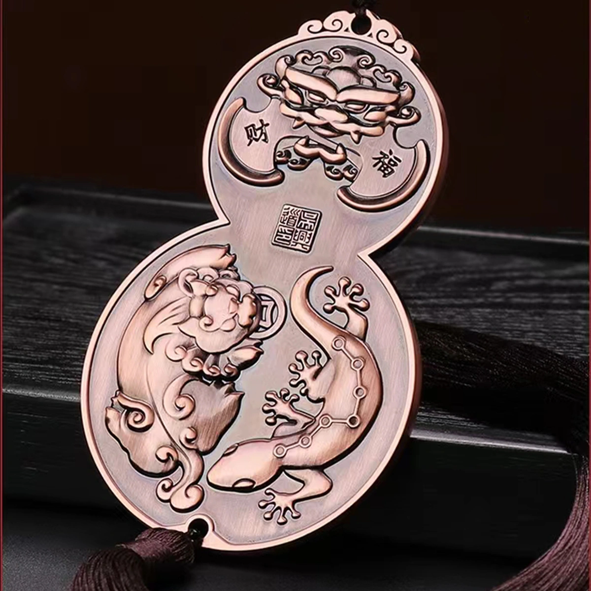 1. The Pure Copper Pi Xiu, Gecko & Gourd Wall Ornament is a triune energy artifact for neutralizing malign forces.