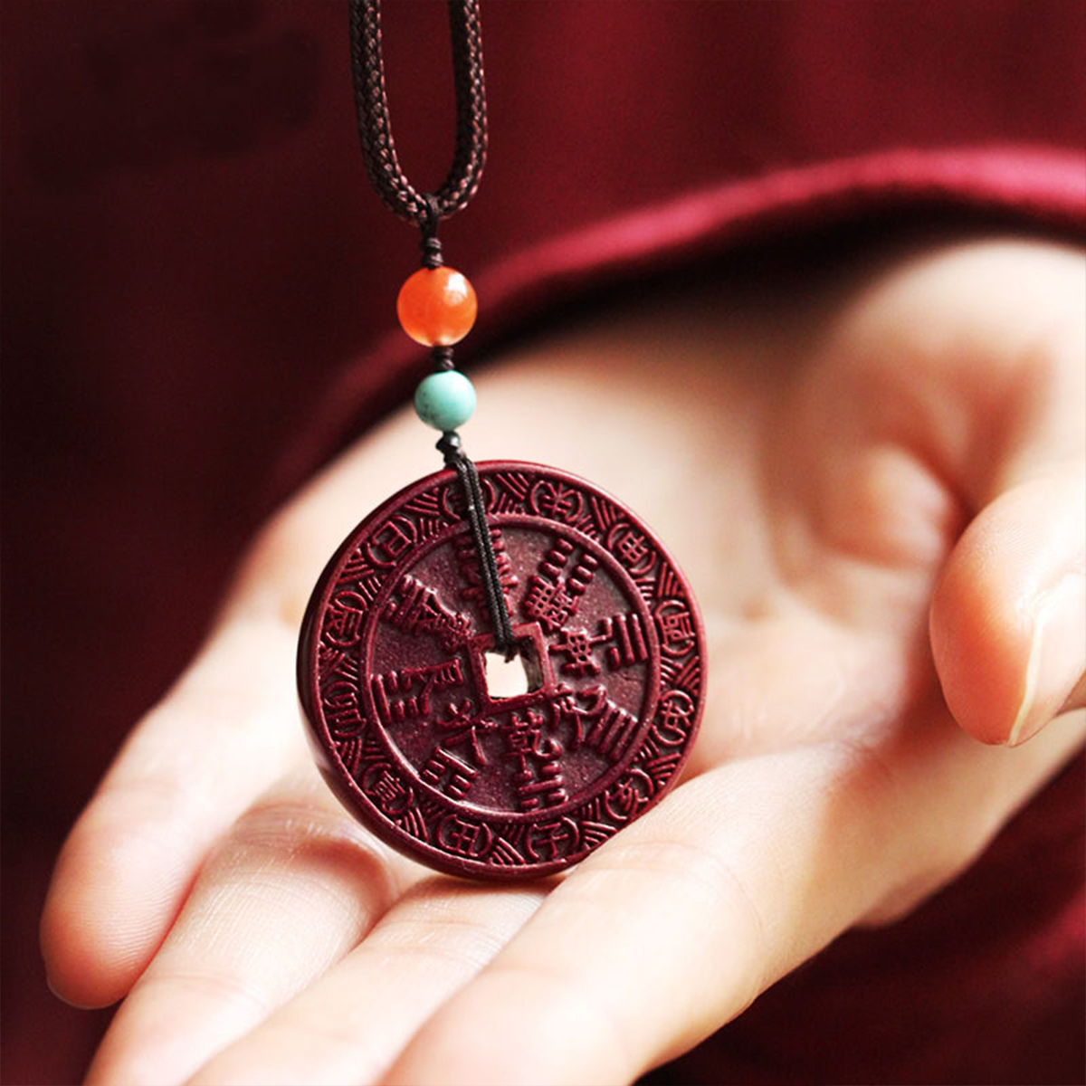 1. The Purple Gold Sand Mountain-Spirit Ritual Coin Pendant is a potent protective artifact. Crafted by compressing Tibetan purple gold sand raw ore into the shape of a Mountain-Spirit coin, the sand matrix contains cinnabar crystals and natural gold particles.