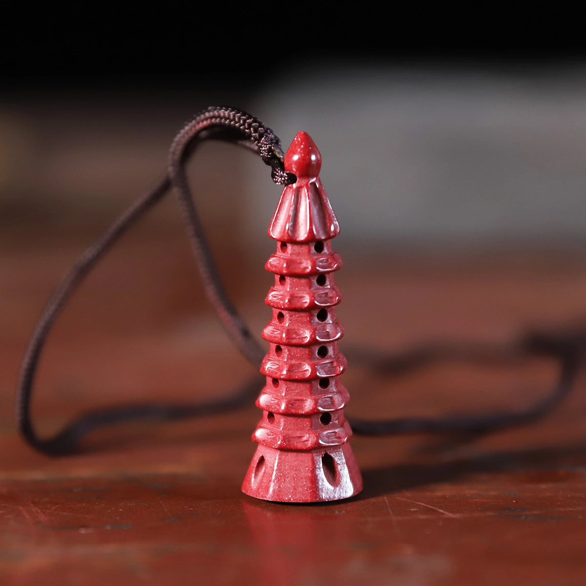 1. Purple Gold Sand Wenchang Pagoda Pendant is a wisdom-enlightenment sacred artifact purely constructed by mineral energy, carved from a solid natural pyroxene crystal into a three-dimensional nine-tier pagoda.