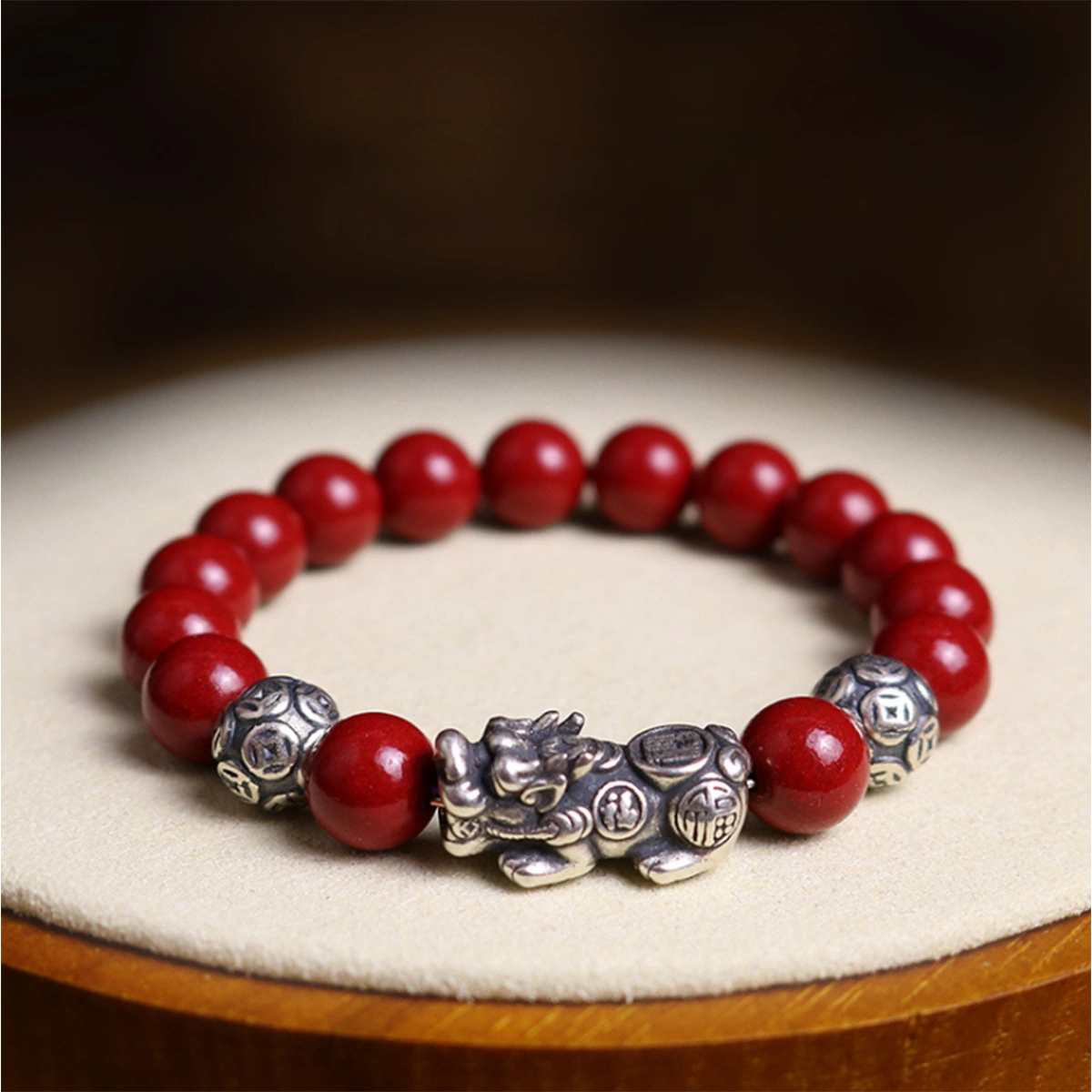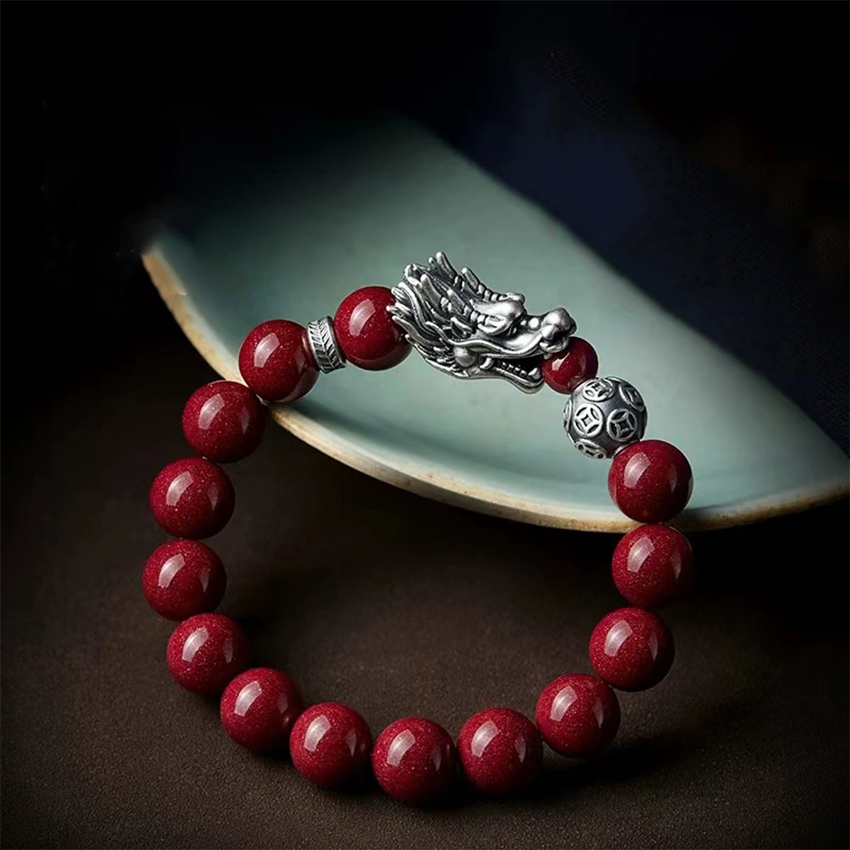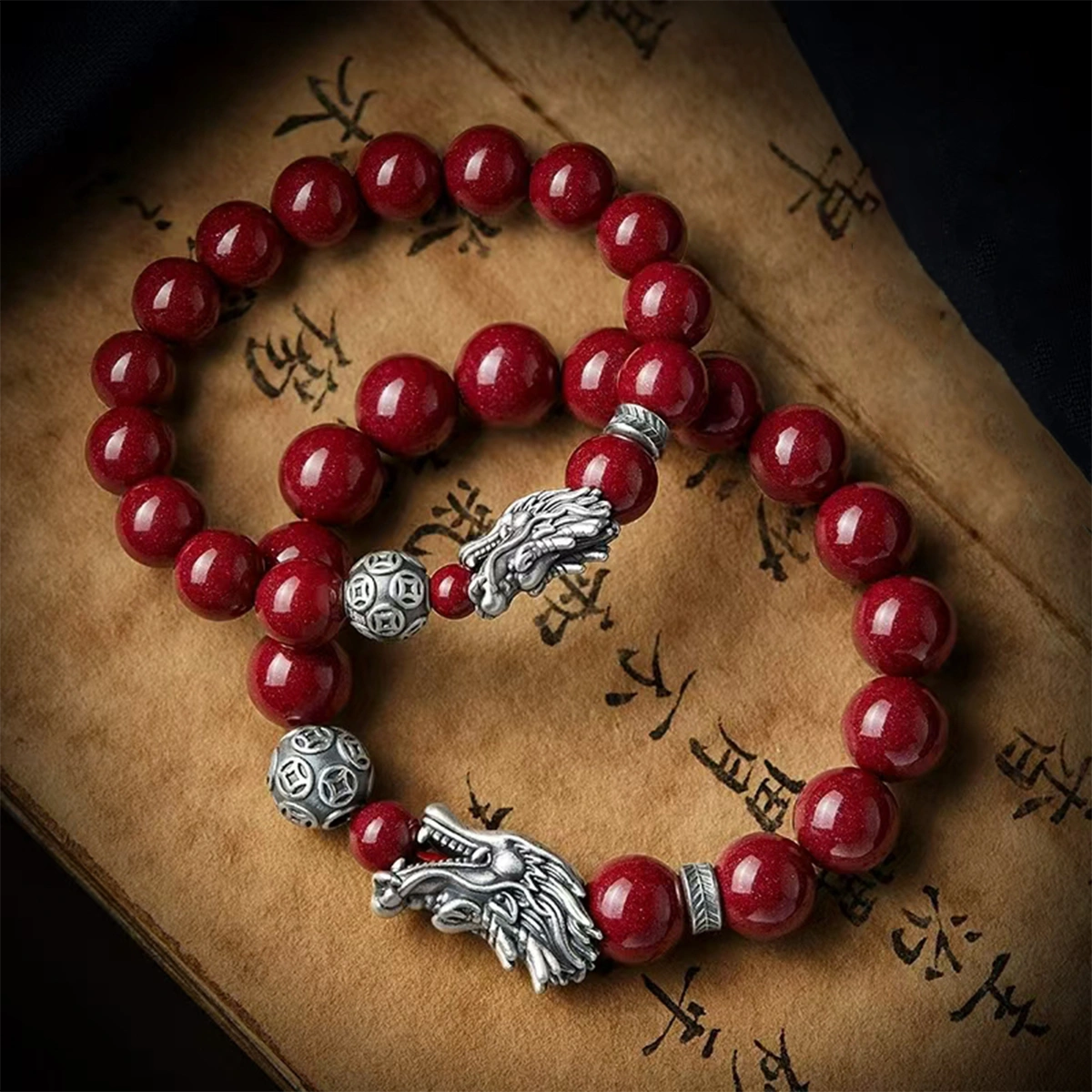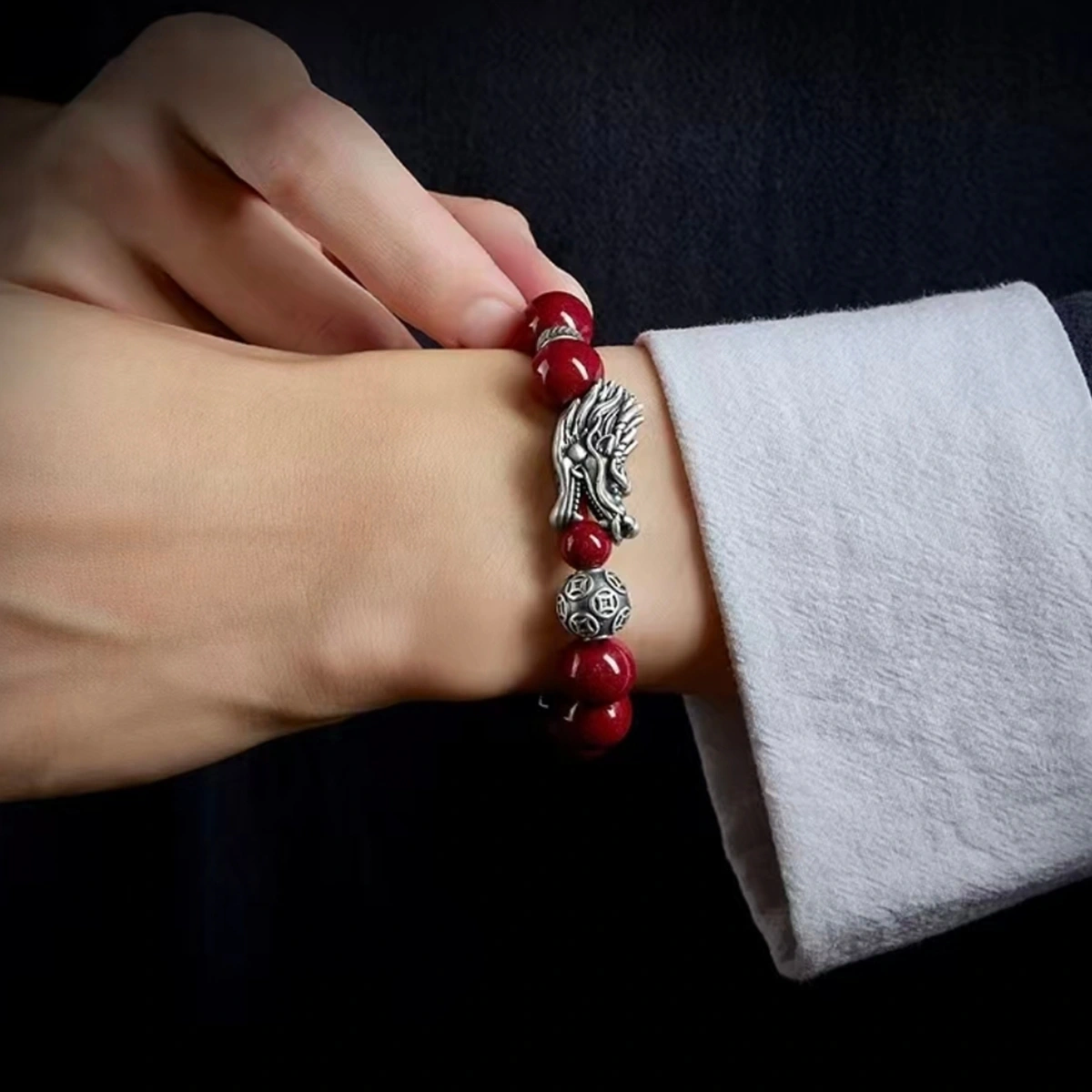 1. The Silver Long Vermilion Bracelet merges traditional spirituality with modern craftsmanship, featuring natural cinnabar beads interwoven with pure silver dragon-carved orbs.