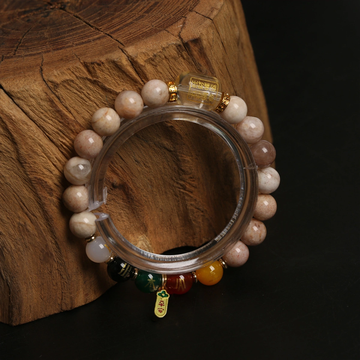 1. The Sunstone Bracelet is an energy-infused vitality chain crafted from natural sunstone ore polished into beads, featuring hematite inclusions that shimmer with golden sand radiance.