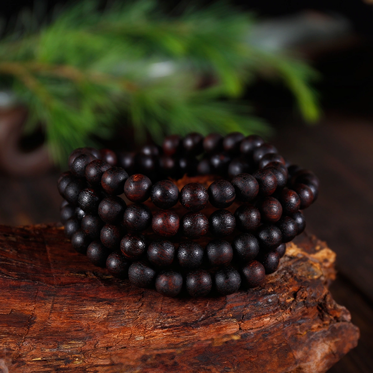 1. The True Agarwood Bracelet, Black Oil & Sinking Grade (108 pieces) is an ultimate cultivation mala crafted from millennium-aged black oil agarwood old stock, with beads sinking immediately in water and oil veins coiling like ink dragons.