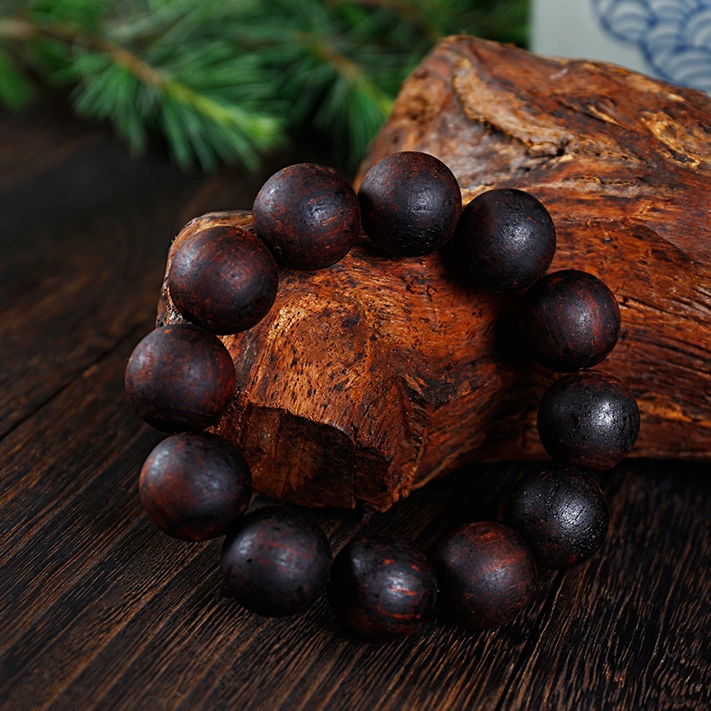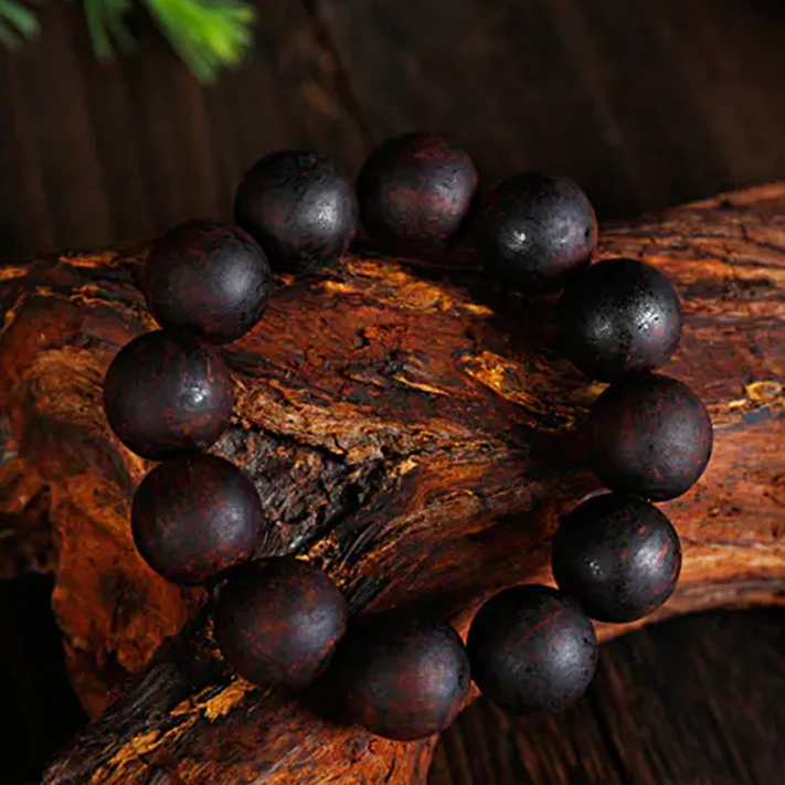 1. The True Agarwood Bracelet is a spirit-stabilizing ritual object coalescing earth's essence, meticulously selected from tropical rainforest sinking-grade black oil agarwood imbued with profound terrestrial energy.