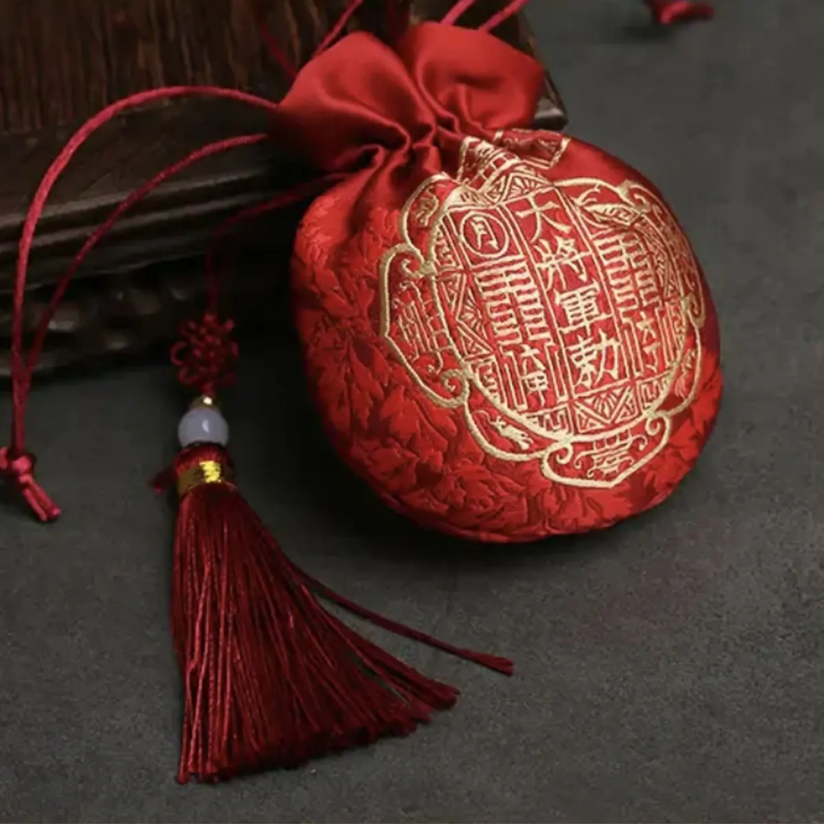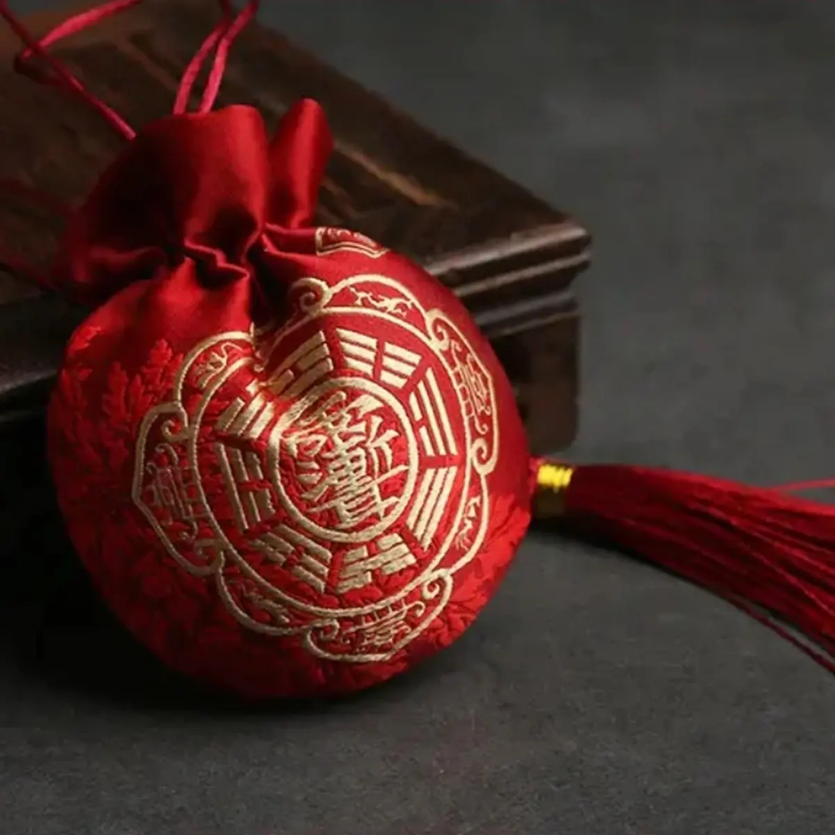 1. Zi Wei Taboo Chinese Herbal Sachet is a portable spiritual artifact fusing Taoist rituals and herbal essence, featuring vermilion satin embroidered with golden Zi Wei Talisman.